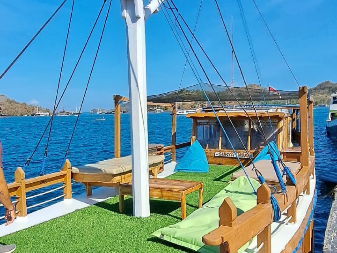 - La location de bateau phinisi qui peut accueillir 8 personnes (sans compter les skipper, l’hôtesse, et le guide) qui comprend le repas du matin, du midi et du soir.