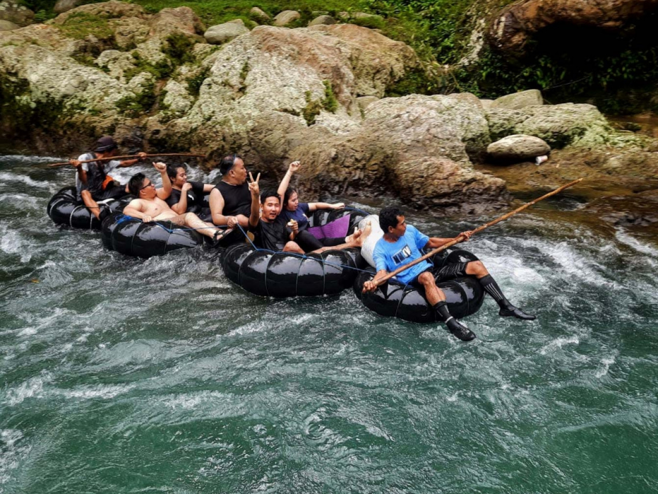 Puis vous pourriez faire du rafting à la façon local (en pneus) sur la rivière Bohorok jusqu'à Bukit Lawang.