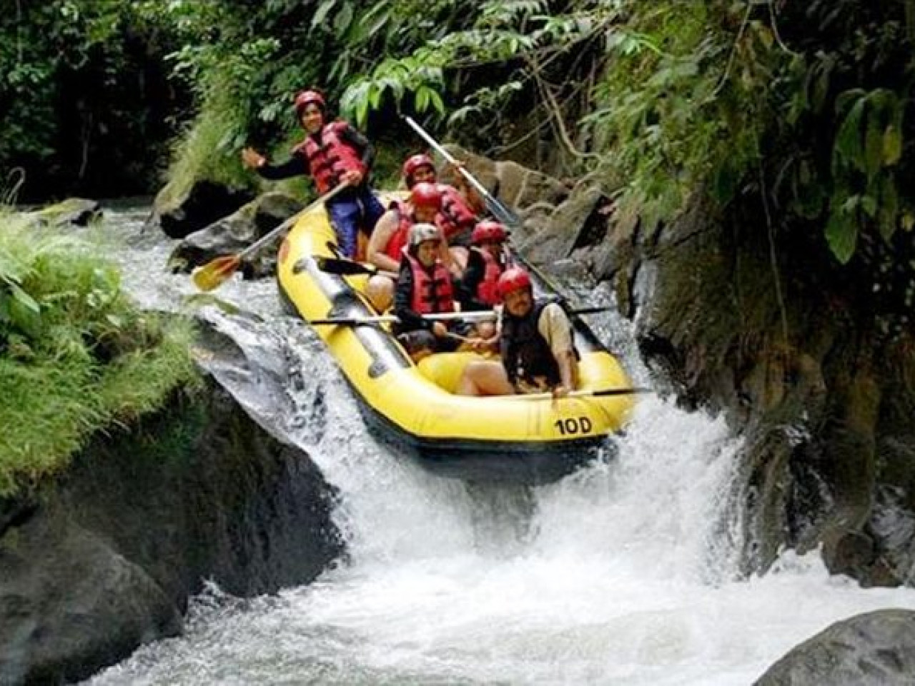 En début de matinée vous ferez le rafting sur la rivière Ayung, une ambiance familiale et agréable : une autre façon de voir un paysage magnifique, des cascade, des rizières, des sculptures sur les vallées et de la campagne balinaise.