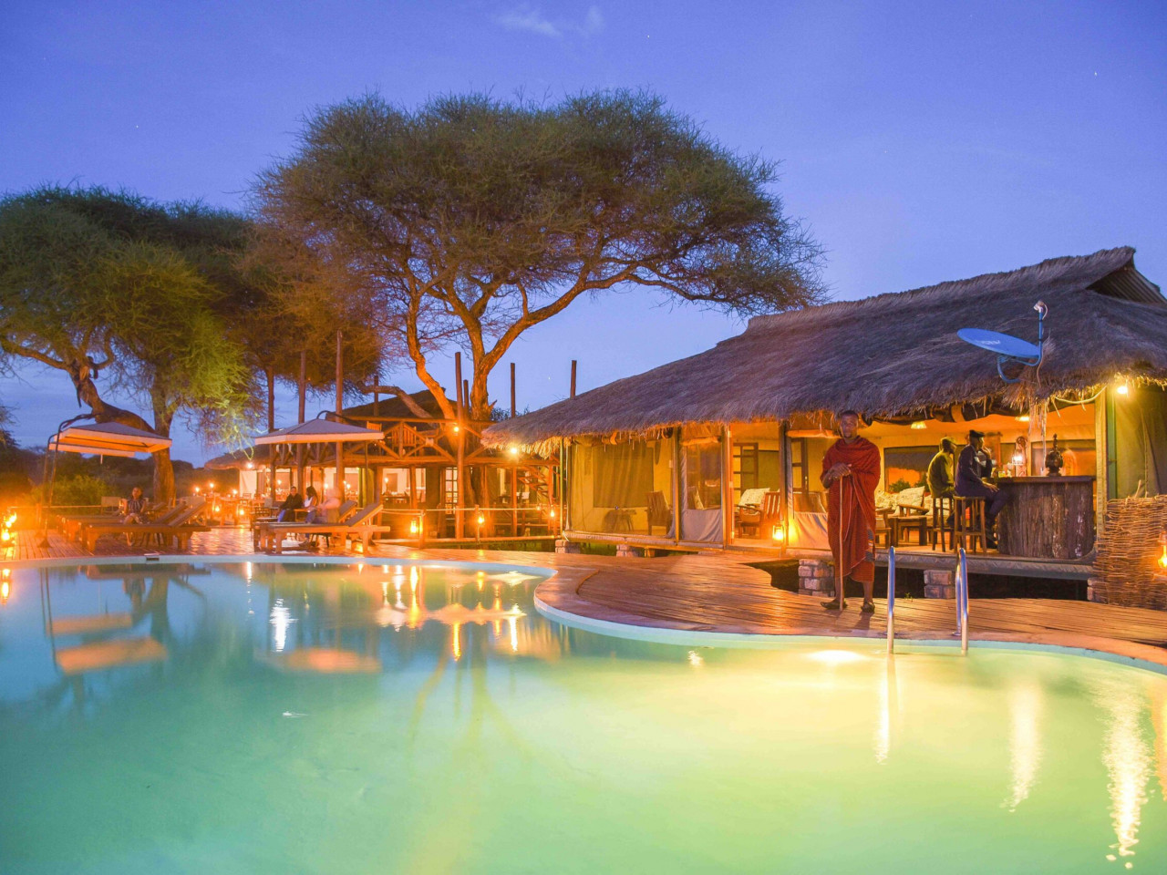 Après-midi libre pour participer aux différentes activités proposées par le lodge : marche guidée dans la brousse, repos au bord de la piscine, relaxation au sauna, compétition de lancer de javelot, chants et danses Maasai au coucher de soleil avec apéritif.