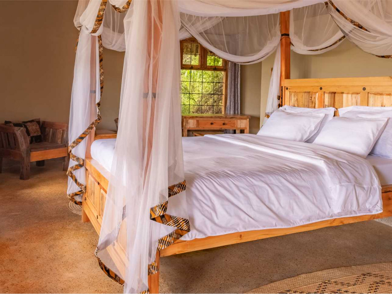 Situés dans un paysage unique et paisible, nos lodges sont l’endroit idéal pour se détendre en pleine nature et recharger ses batteries. Ils constituent également un excellent point de départ pour partir en excursion ou en safari, profiter de circuits exclusifs en montagne, faire des randonnées ou vivre des aventures culturelles. Et si vous le souhaitez, c’est aussi un lieu où vous pouvez vous impliquer personnellement et contribuer activement à nos projets sociaux. Dans notre village maasaï, vous aurez le choix entre 16 huttes traditionnelles, construites selon les méthodes ancestrales en terre et en chaume, mais aménagées selon les standards européens. Elles sont alimentées par énergie solaire et disposent de toilettes privées ainsi que de douches chaudes. Profitez du lever du soleil depuis votre terrasse privée, entouré par la nature, avec une vue imprenable sur le mont Kilimandjaro. Notre restaurant propose une cuisine mêlant plats internationaux et spécialités swahilies traditionnelles.