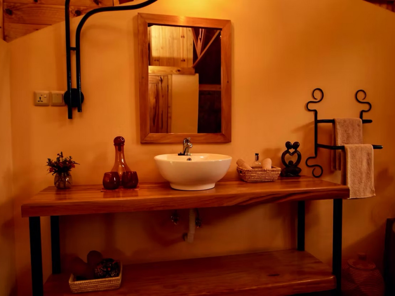 Notre hébergement isolé, niché au sommet d’une colline rurale, offre un environnement paisible et reposant — parfait pour se détendre après une journée bien remplie d’exploration de la faune. Fonctionnant en totale autonomie, nous utilisons l’électricité solaire et adoptons des pratiques écologiques durables afin de préserver une relation harmonieuse avec la nature qui nous entoure. Ce lodge dispose d’un jardin et d’une terrasse ensoleillée donnant sur de magnifiques fermes et forêts. Proches de la nature sauvage, chaque journée ici nous rappelle que nous sommes au cœur battant de l’Afrique.