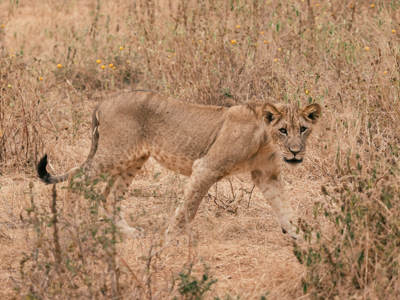De grands troupeaux d’éléphants creusent le lit de la rivière à sec pour y puiser de l’eau, alors que les gnous, buffles, zèbres et antilopes se rassemblent autour des lacs de plus en plus petits. C’est l’un des rares lieux en Tanzanie où l’on peut observer les antilopes de type désertique, comme le somptueux oryx et l’étonnante gerenuk (ou « gazelle girafe » à long cou).