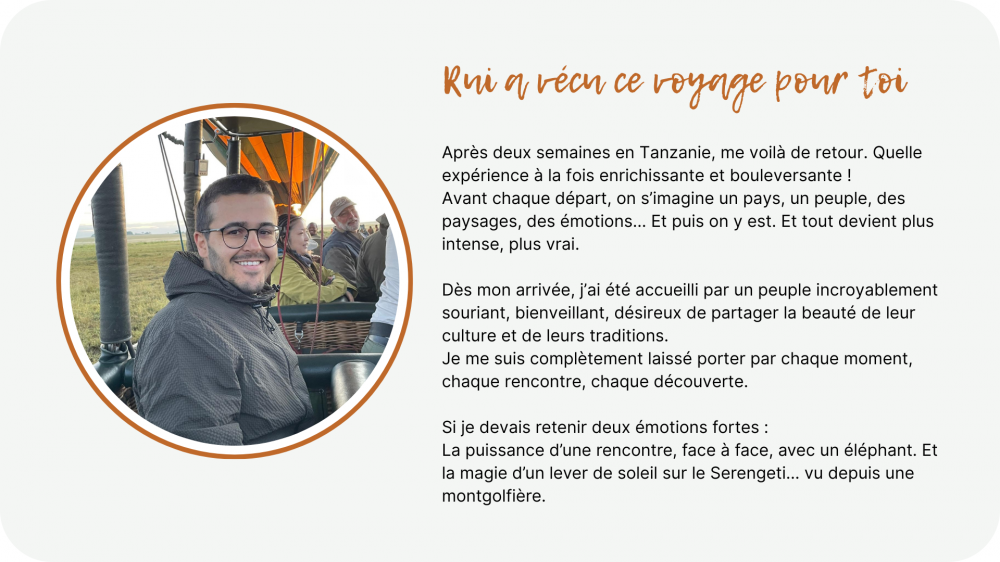 Avant mĂȘme de poser le pied en Tanzanie, cette vidĂ©o te transporte au milieu des grands espaces, des scĂšnes de safari inoubliables, et de la magie pure que dĂ©gage ce pays.